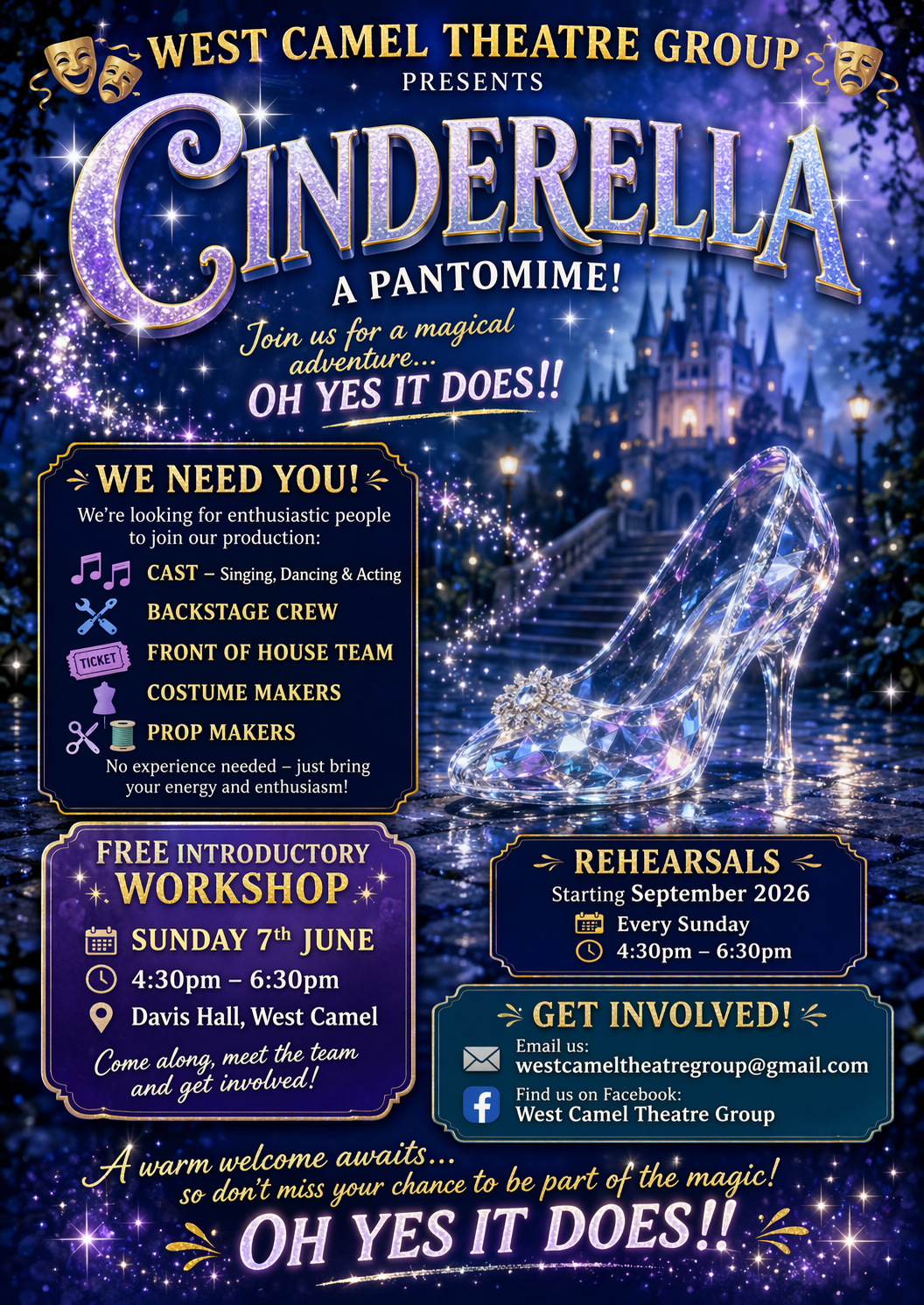 If you are unable to attend this, but are interested, please email westcameltheatregroup@gmail.com and let us know what you are interested in i.e. acting/backstage/front of house etc, and our director Andy will contact you (anyone under 18 needs to have a parental/carer contact).
